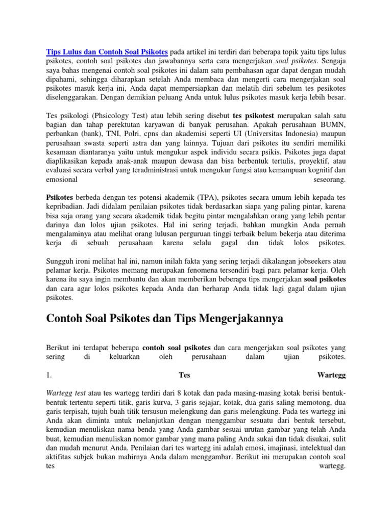Doc Tips Lulus Dan Contoh Soal Psikotes Adji Develop